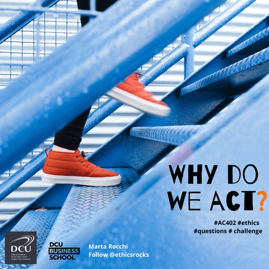 My Business and Professional Ethics module in DCU Business School has 100% continuous assessment. For one of their assignments, students submit a reflective piece where they write their own ethical theory, and they compare it with one of the existing theories explained in class. They are asked to work in pairs, so that they can have a discussion with a teammate: “It was a good experience as we got to think deeply about how people should behave. The conversation was enriching”.